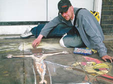 He has been painting scenes from the Biblical story of the Israelites’ exodus from Egypt on the pavement for the past month.